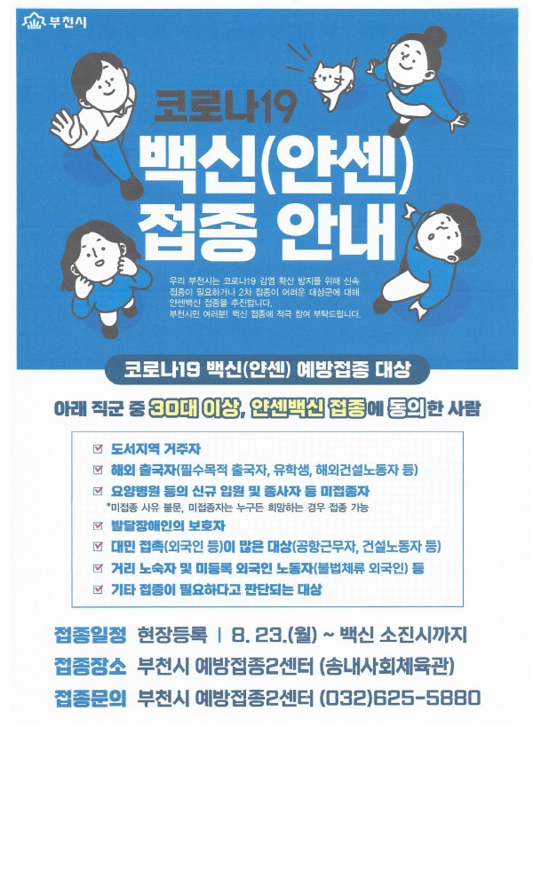 접종장소 : 부천시 예방접종2센터 (송내사회체육관 625-5880)
