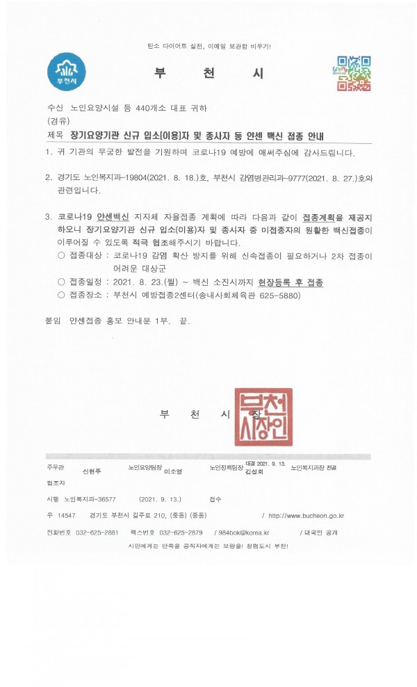 부천시에서는 다음과 같이 접종계획을 공지합니다.
