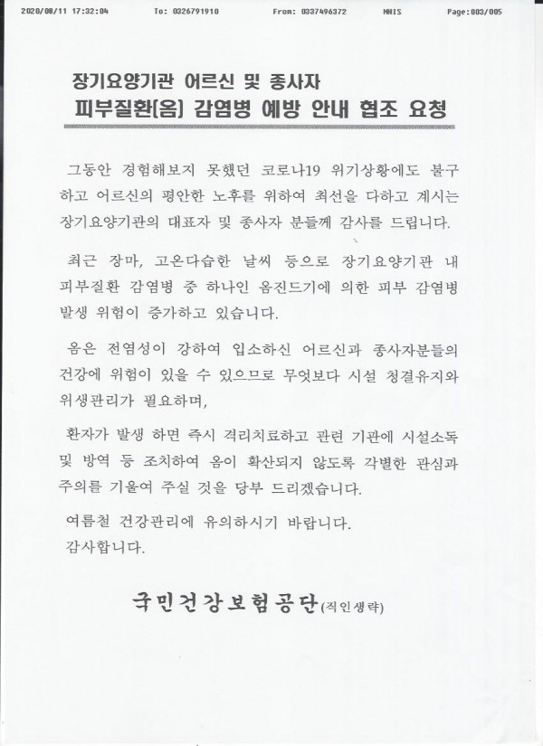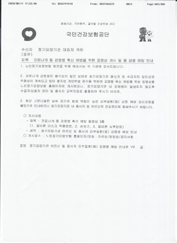 감염예방 안내 협조문 페이지 정보 작성자 어른이 도움센터 작성일20-08-12 11:09 조회5,048회 댓글0건 관련링크 목록 본문 1. 장기요양기관 어르신 및 종사자 협조문 목록